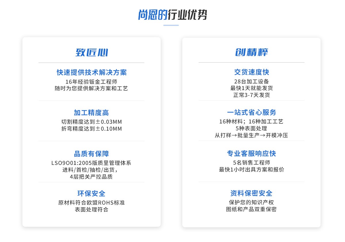 必威app官方下载bteway引进型的必威app体育下载,数控折弯机,压铆机,旋铆机,焊接机,定制超大工作台面的油压机等生产设备,切割精度可达±0.03mm,折弯精度可达±0.10mm,快可以1天交货,正常发货3-7天。